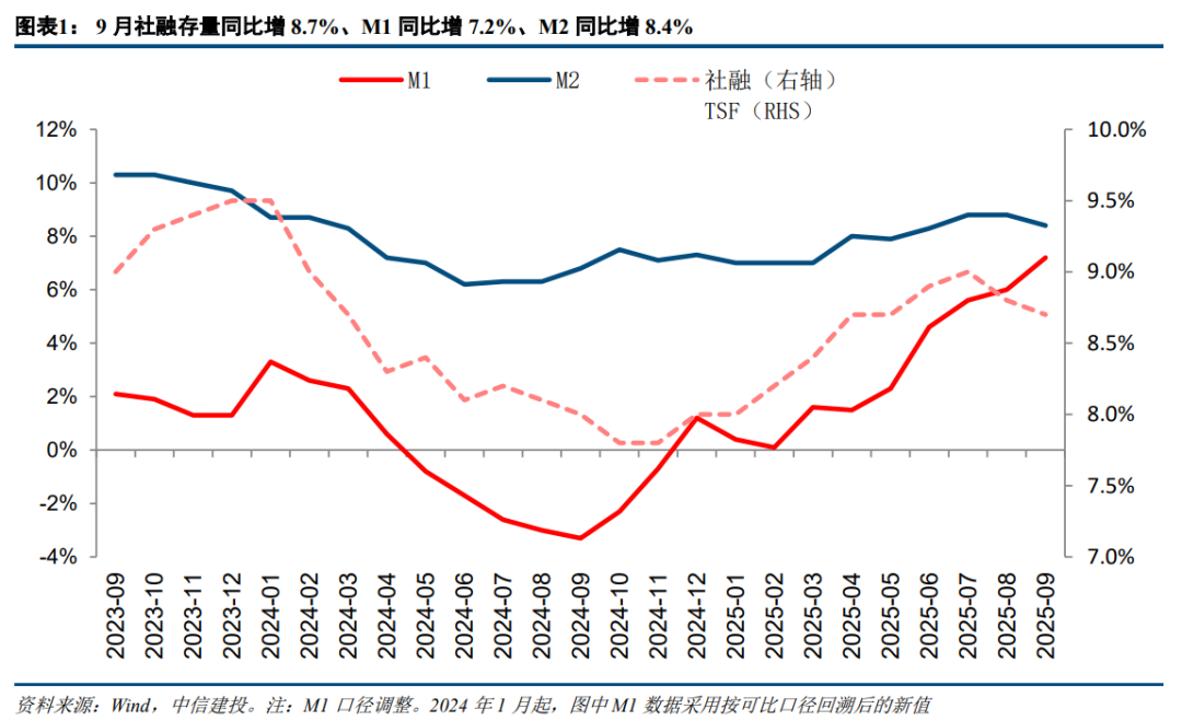 事件:10月15日,央行发布2025年9月金融数据。其中,9月社融新增3.53万亿,同比少增0.23万亿,存量社融增速8.7%,环比下降0.1pct。人民币贷款新增1.29万亿,同比少增0.30万亿。M1增速7.2%,环比上升1.2pct;M2增速8.4%,环比下降0.4pct。